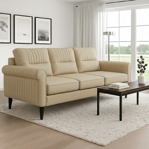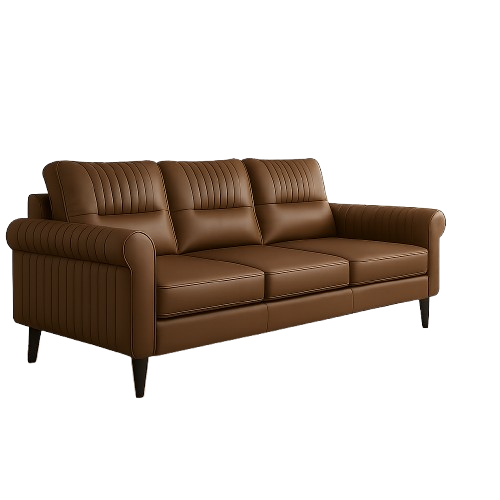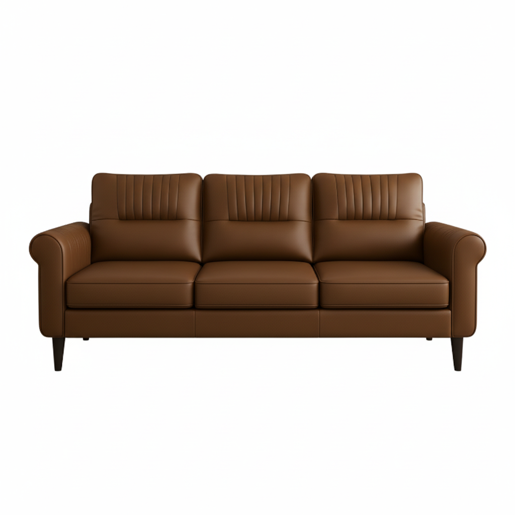 The Bronson Luxe Leather Sofa brings timeless sophistication to any modern living space. Wrapped in rich, caramel-toned leather, it combines premium comfort with a bold aesthetic. The vertical-stitched detailing across the arms and backrest adds a refined, handcrafted appeal, while the plush cushions ensure lasting support. Set on tapered wooden legs, this sofa blends luxury and durability perfect for contemporary homes, stylish lounges, or office interiors seeking an elegant, high-end centerpiece.