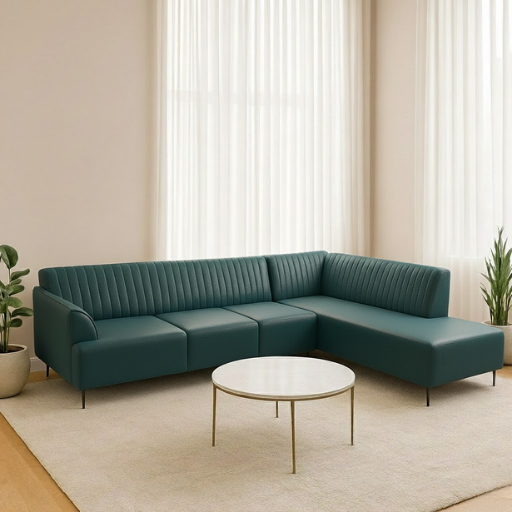 The Solara Linear Elegance Sofa blends minimalist design with refined comfort, featuring clean lines and beautifully stitched vertical paneling. Its spacious L-shaped layout offers ample seating, making it perfect for both relaxed lounging and stylish entertaining. Wrapped in a soft, neutral-toned fabric, it creates a calming, airy atmosphere that brightens any contemporary home. With its elevated legs and modern silhouette, this sofa stands as a timeless centerpiece for sophisticated living spaces.